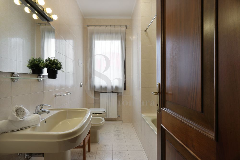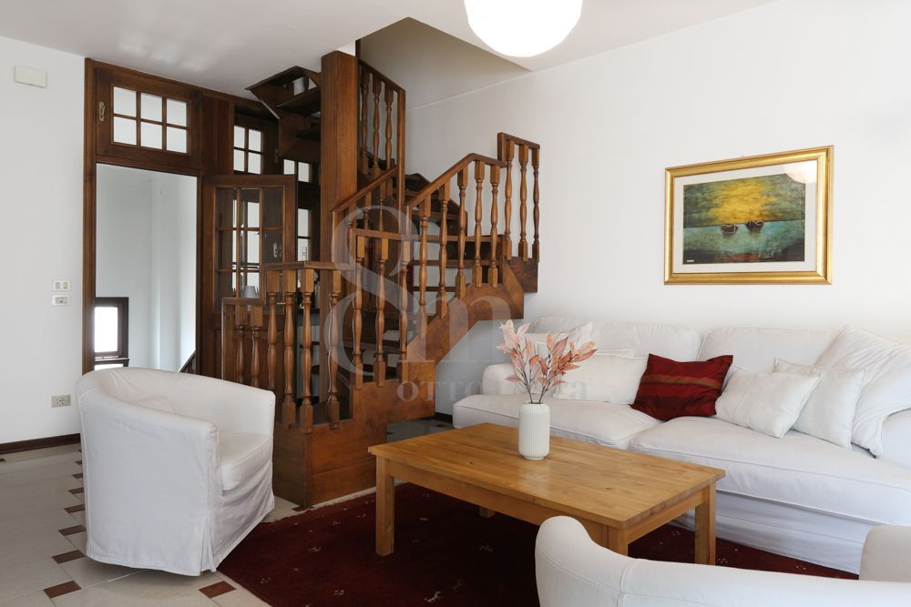 L’ingresso è indipendente e con doppio accesso, uno dal fronte strada e l’altro dallo scoperto sul retro accanto al garage. Già da qui la sensazione è chiara, ogni spazio è pensato per essere vissuto senza compromessi.