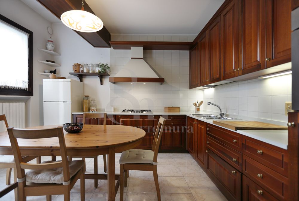 Salendo al primo piano si entra nel cuore dell’abitazione, il soggiorno. È arioso, accompagnato da una luce che arriva dalla terrazza e lo segue per gran parte della giornata. È uno di quegli ambienti che non mettono fretta, dove puoi arredare con libertà, senza dover fare rinunce. La cucina è abitabile e separata, con un’anima decisa grazie all’affaccio sulla terrazza principale: circa 20 mq che diventano un’estensione naturale della zona giorno, perfetta per accogliere gli ospiti, mangiare all’aperto e ritagliarsi momenti di convivialità e relax.