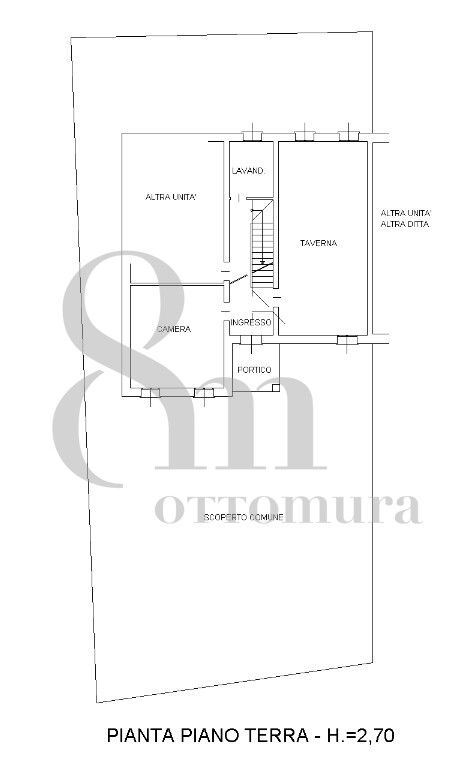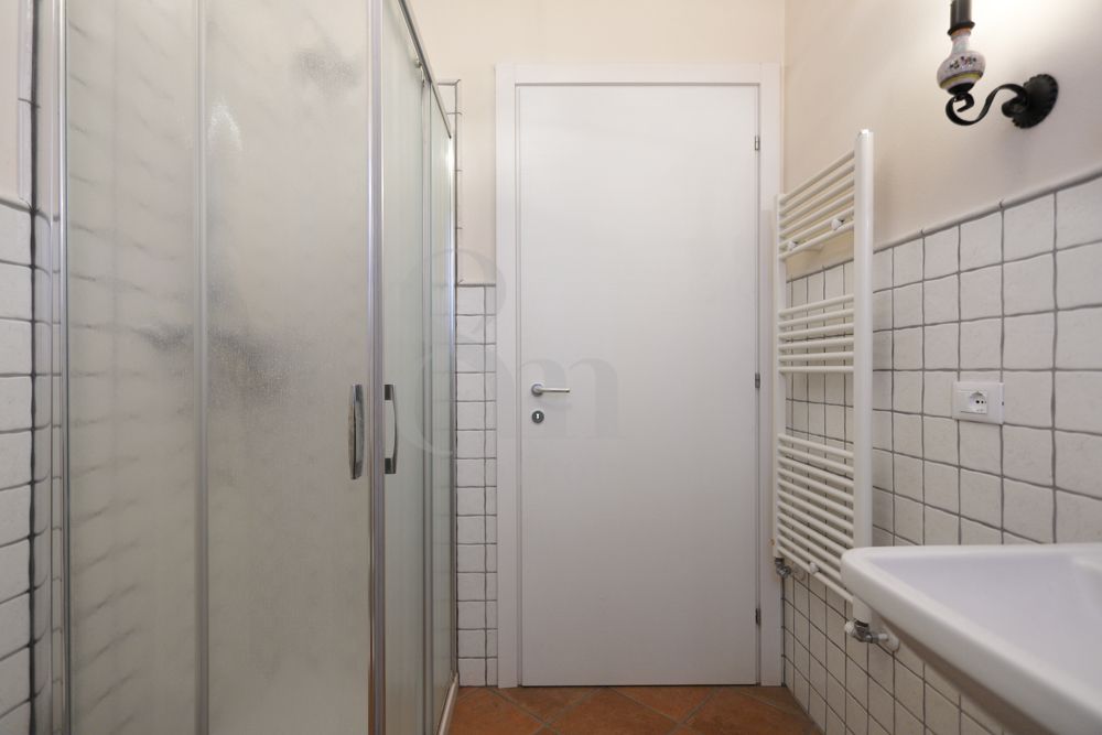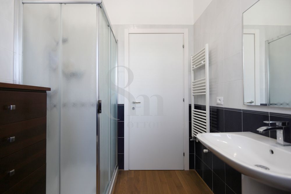 Entrando, il piano terra è già strutturato per essere utilizzato anche in modo indipendente. C’è una taverna di oltre 30 mq predisposta per una cucina, una camera matrimoniale e un bagno con doccia. Questo significa poter creare un secondo spazio abitativo, uno studio o una zona giorno separata.
