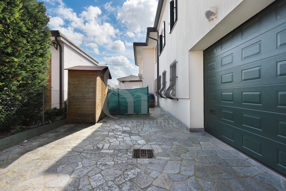 All’esterno trovi circa 230 mq di scoperto privato con doppio accesso carraio, una comodità concreta nella gestione quotidiana. Il garage di circa 25 mq, con basculante motorizzato e angolo lavanderia, completa uno spazio esterno funzionale e ben organizzato.